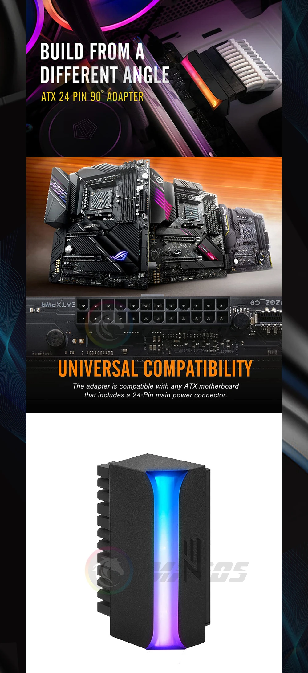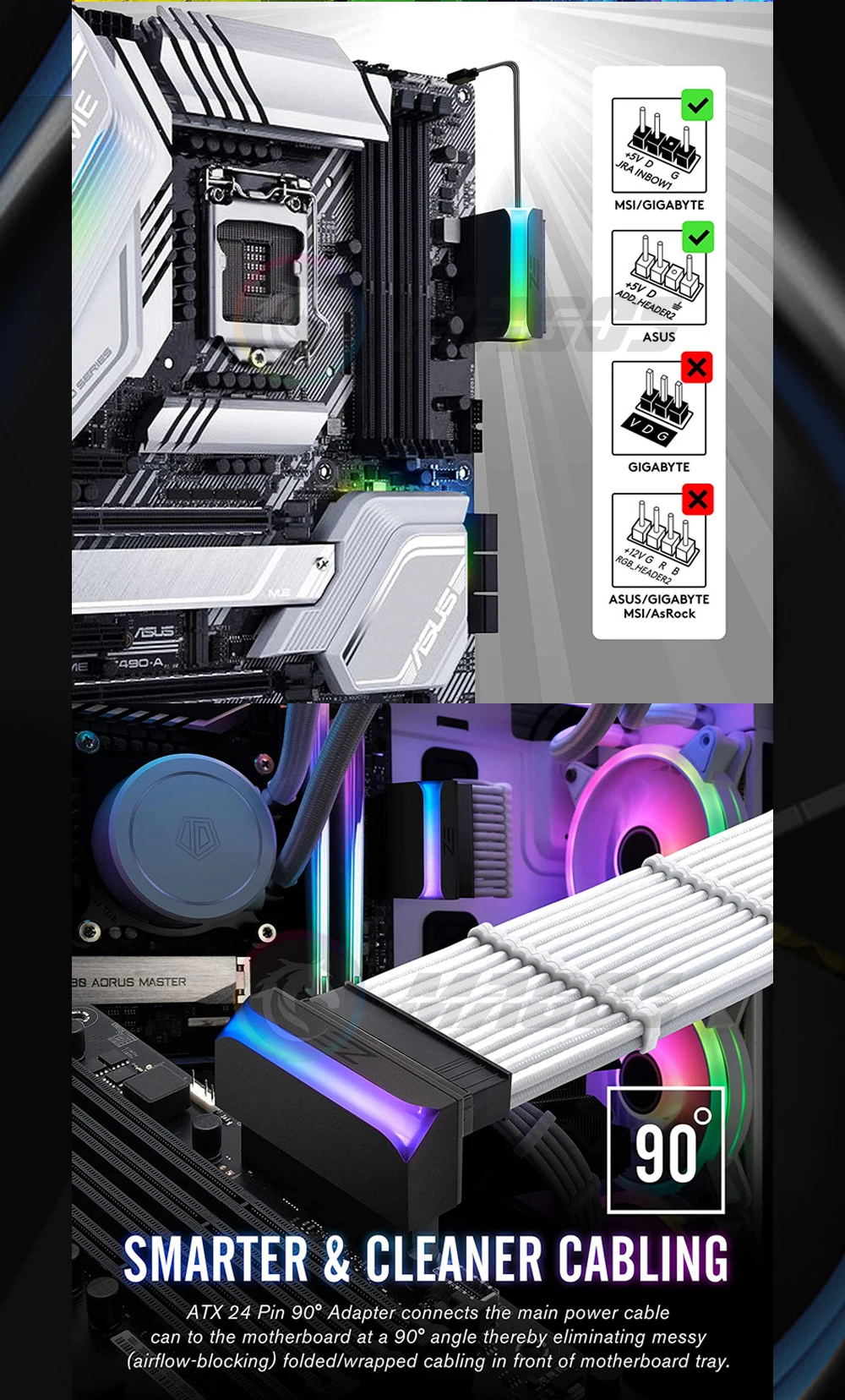 Comprar Placa base de ordenador síncrona ARGB, fuente de alimentación ATX, Conector de giro 24P, 90 grados, adaptador de dirección de giro, 5V