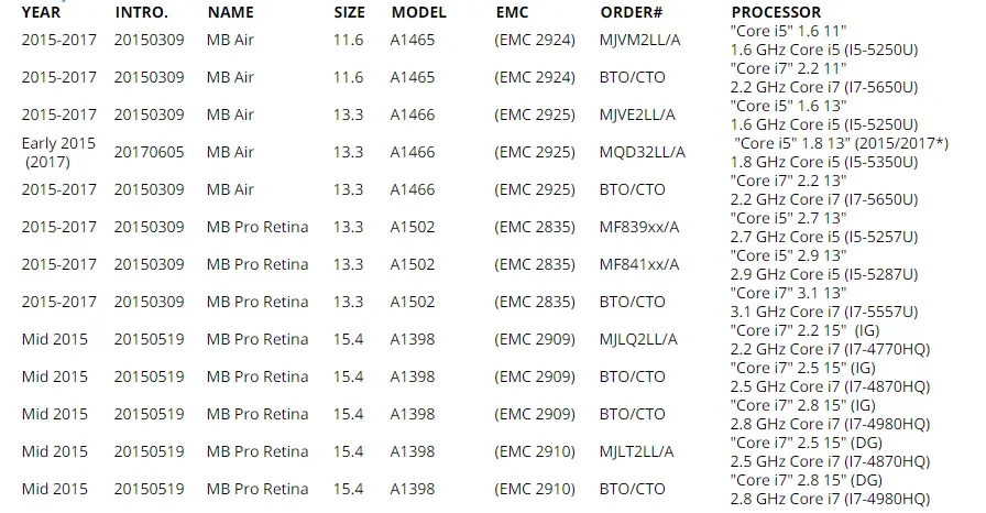 512GB: 655-1805A, 655-1818A, 655-1839A, 655-1805D256GB: 655-1803, 655-1817, 655-1838128GB: 655-1802, 655-1816, 655-1837Nota::A1466 A1465 no admite 1TB.