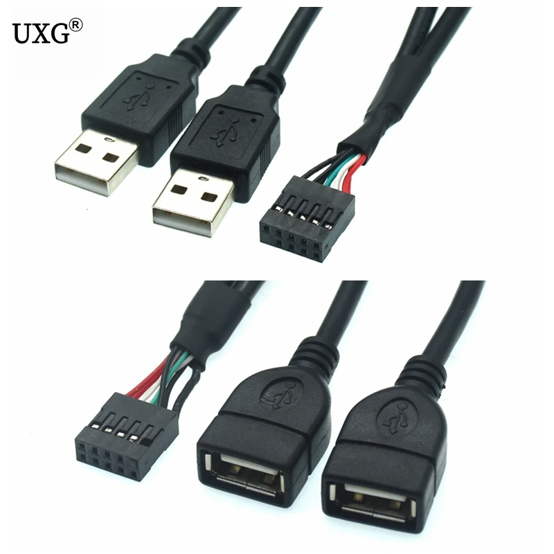 Comprar Placa base de PC USB2.0 9 pines hembra a doble A USB macho y doble A USB hembra divisor Cable corto de datos 24AWG Cable 0,5 m