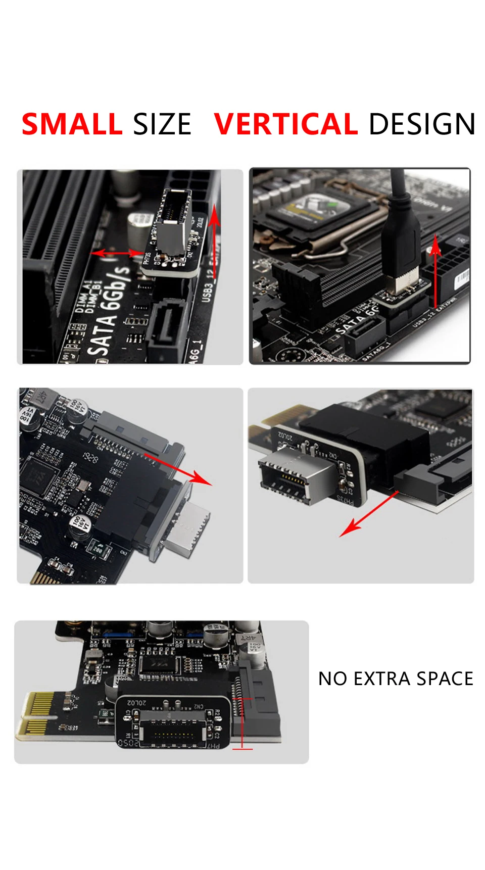 Comprar Placa base PH73S, USB 3.019p/20P a tipo E, adaptador de 90 grados, chasis, puerto de enchufe frontal tipo C