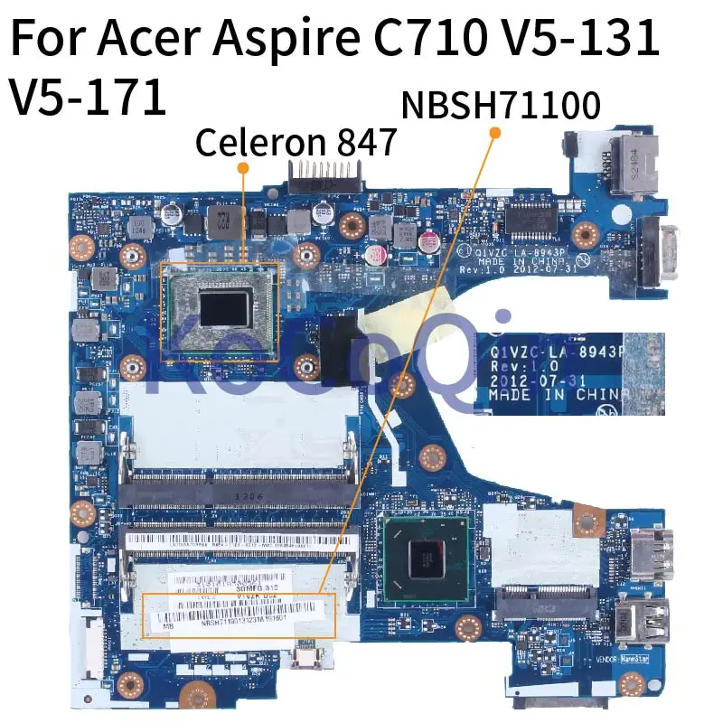 Comprar Placa base para portátil Acer Aspire C710, V5-131, V5-171, Celeron 847, NBSH71100, LA-8943P, SR08N, DDR3