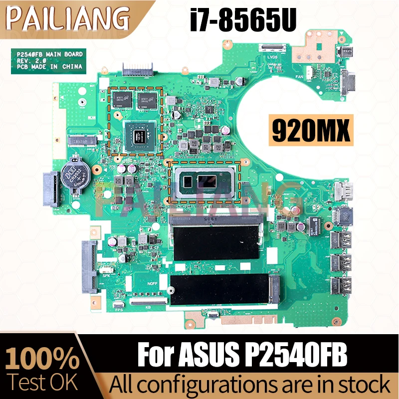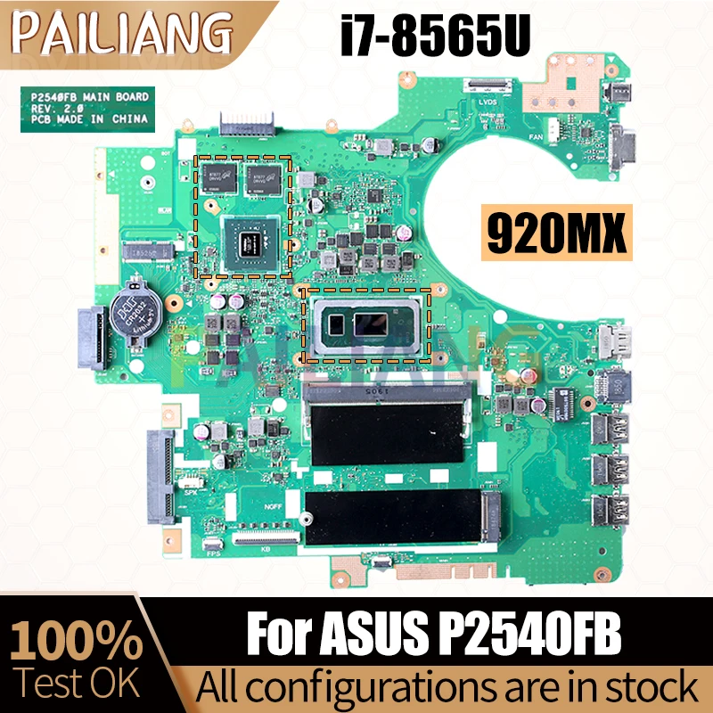 Comprar Placa base para portátil ASUS P2540FB REV.2.0, i7-8565U 920MX 2G 60NX0240-MB1131, totalmente probada