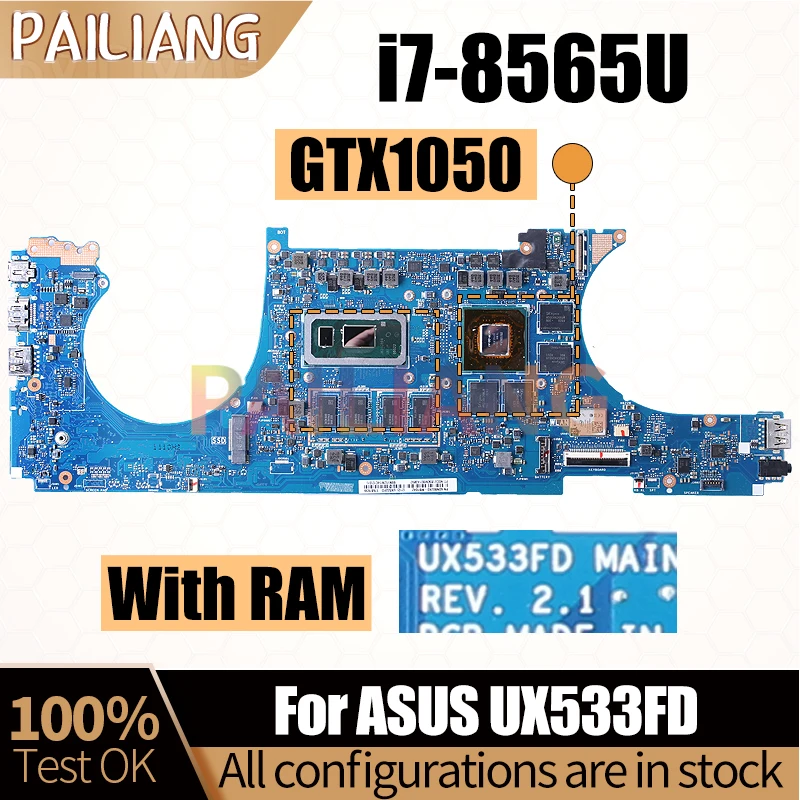Comprar Placa base para portátil ASUS UX533FD REV.2.1, 60NB0JX0-MB1042, i7-8565U, GTX1050, 4G con RAM, completamente probada