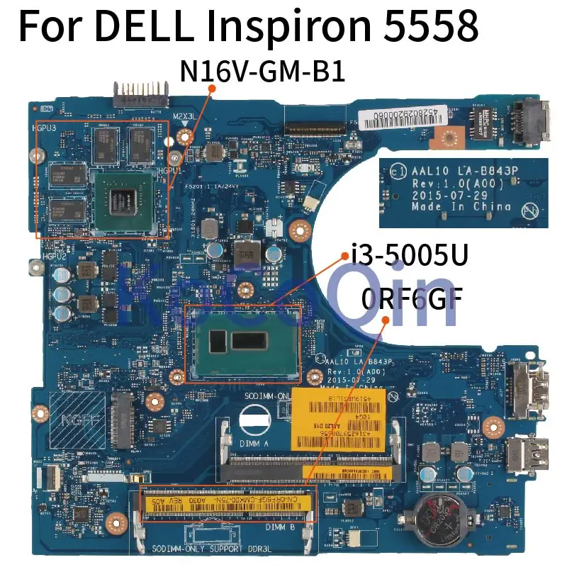 Comprar Placa base para portátil DELL Inspiron 5458, 5558, 5758, I3-5005U, CN-0RF6GF, 0RF6GF, LA-B843P, SR244, N16V-GM-B1, DDR3