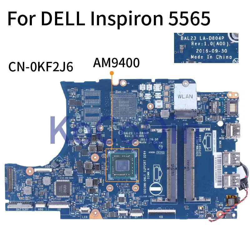 Comprar Placa base para portátil DELL Inspiron 5565 AM9400, LA-D804P, 0KF2J6 DDR4