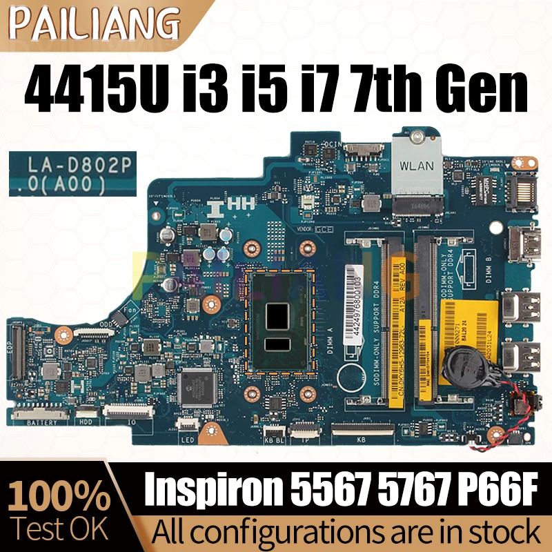 Comprar Placa base para portátil Dell Inspiron 5567 5767 P66F, BAL21, LA-D802P, 4415U, i3/i5/i7, 7ª generación, 081YW5, completamente probada
