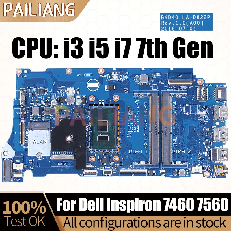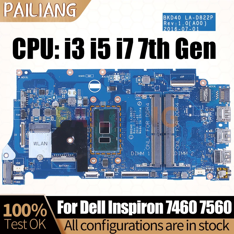 Comprar Placa base para portátil Dell Inspiron 7460 7560 LA-D822P i3 i5 i7 7th Gen 029PJX 0K6PMH 06NY5C completamente probada