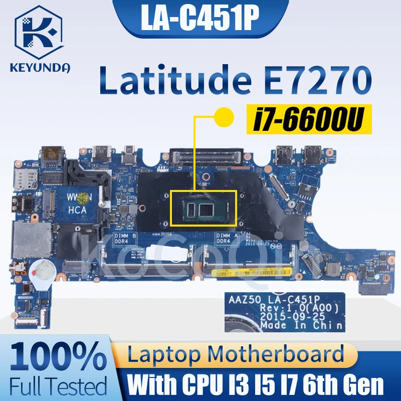 Comprar Placa base para portátil Dell Latitude E7270 7270, LA-C451P, 0T0V7J, 0H7Y7K, 00DTF3, I3-6100U, I5-6300U, I7-6600U