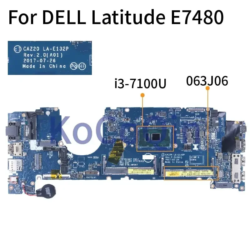 Comprar Placa base para portátil DELL Latitude E7480, i3-7100U de CPU, 0HNP6J, 063J06, SR343, DDR4, probada en funcionamiento, 7480