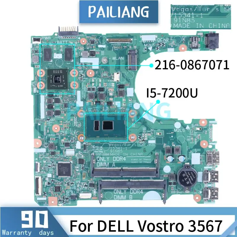 Comprar Placa base para portátil DELL Vostro 3567 I5-7200U, placa base para portátil 0GW6K3 15341-1 SR342 216-0867071 DDR3