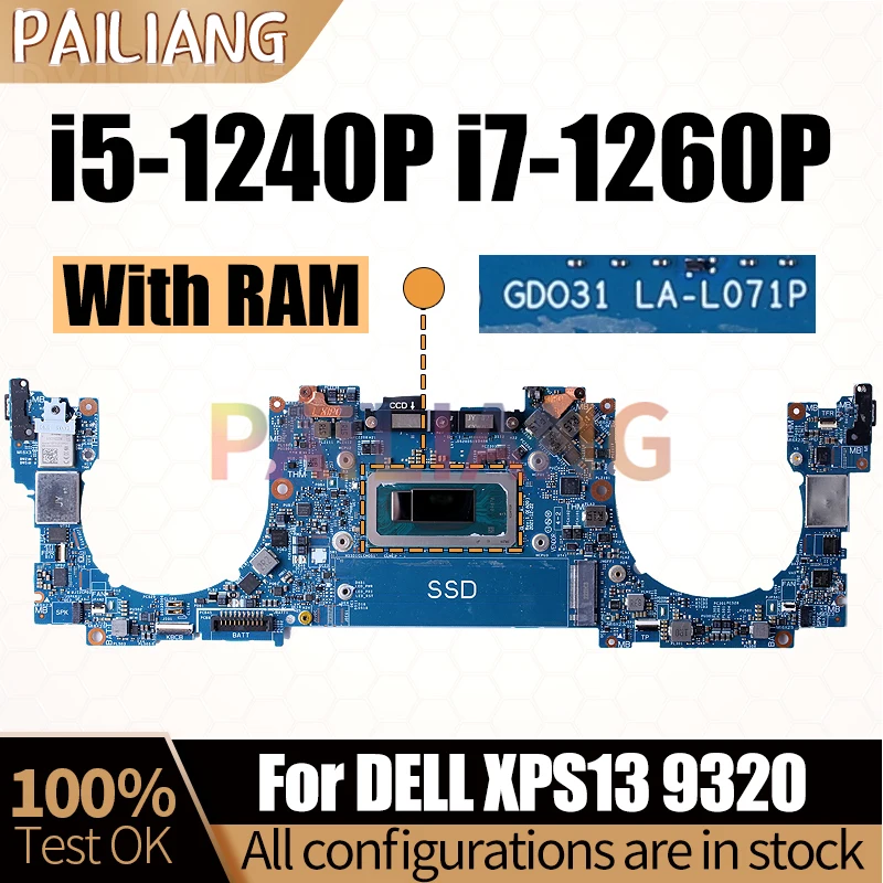Comprar Placa base para portátil Dell XPS13 9320, LA-L071P SRLD6 i5-1240P, con RAM 0CW9KM 0P9FNW, completamente probada, i7-1260P