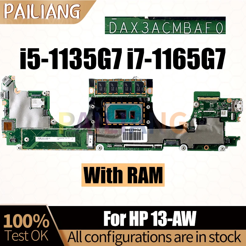 Comprar Placa base para portátil HP 13-AW, DAX3ACMBAF0, i5-1135G7, con RAM, completamente probada, i7-1165G7