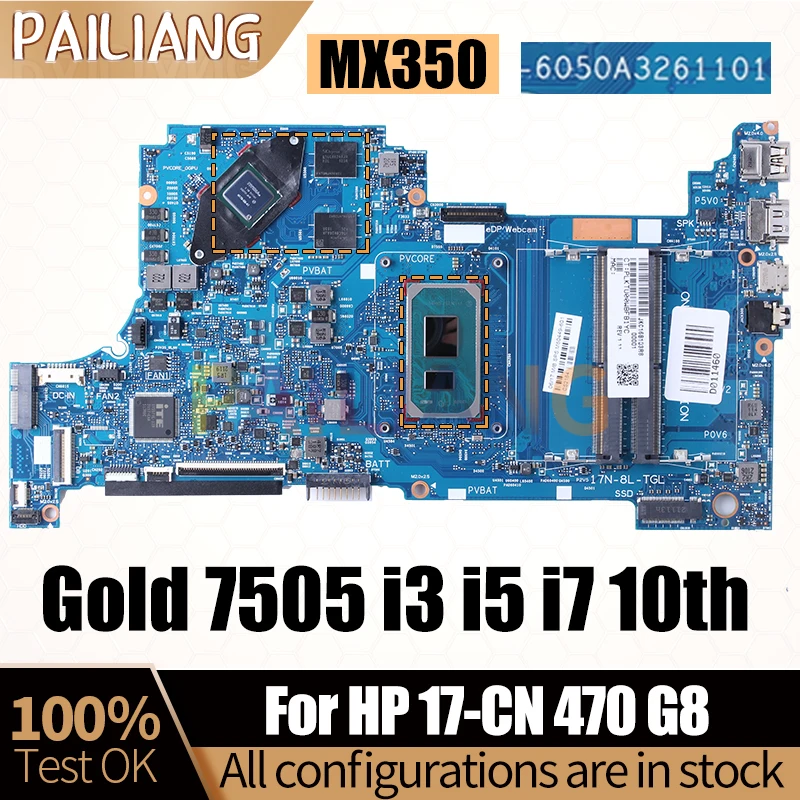 Comprar Placa base para portátil HP 17-CN 470 G8, 6050A3261101 7505 Gold, i3, i5, i7, 10 ° M50448-601, placa base probada completamente