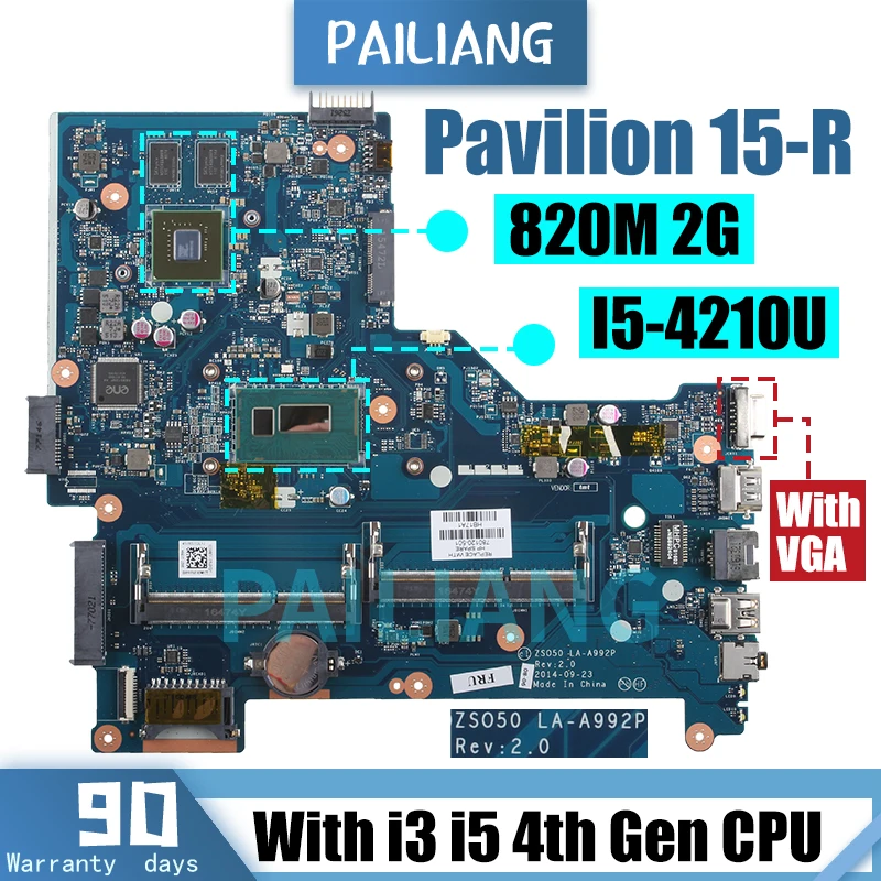 Comprar Placa base para portátil HP Pavilion 15-R, placa base para portátil LA-A992P 765316-501 760968-501 i3 i5 4th Gen GPU 2G Notebook, 775395-501