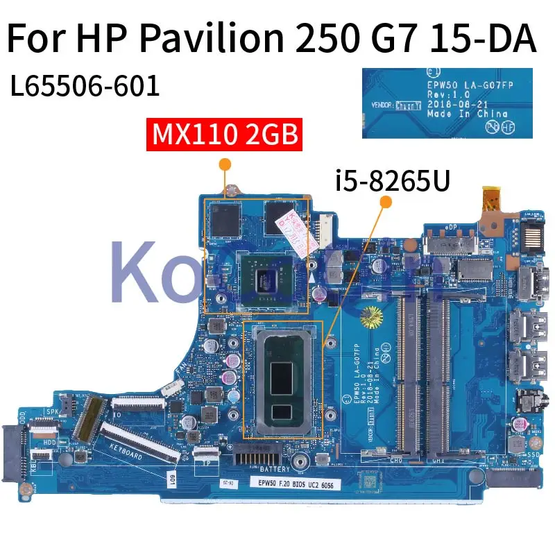 Comprar Placa base para portátil HP Pavilion 250, G7, 15-DA, i5-8265U, MX110, 2GB, LA-G07FP, L65506-601, DDR4
