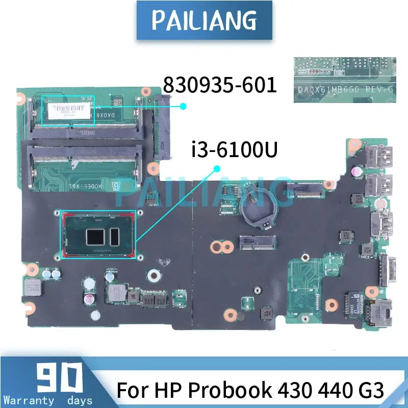 Comprar Placa base para portátil HP Probook 430, 440 G3, i3-6100U, DA0X61MB6G0, SR2EU, DDR3, 830935-601