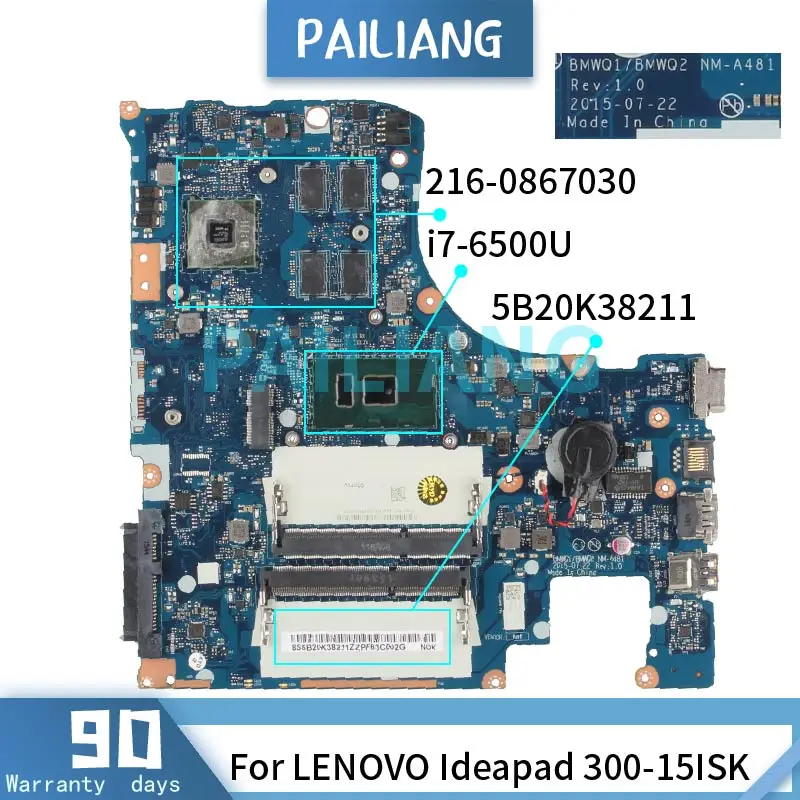 Comprar Placa base para portátil LENOVO Ideapad 300-15ISK, i7-6500U, 5B20K38211, SR2EZ, 216-0867030, DDR3, probada, OK