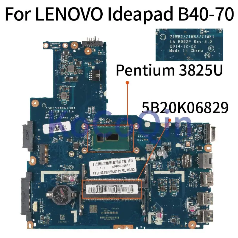 Comprar Placa base para portátil LENOVO Ideapad B40-70 Pentium 3825U, SR24B ZIWB2/ZIWB3/ZIWE1 LA-B092P, 5B20K06829