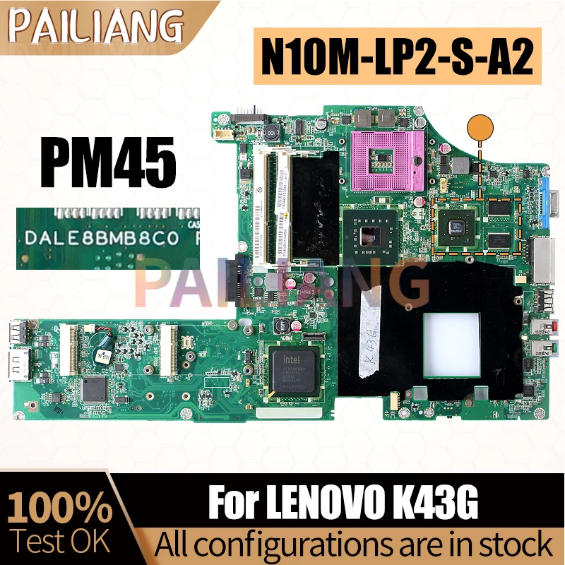 Comprar Placa base para portátil LENOVO K43G, placa base probada completamente, compatible con ordenador portátil, DALE8BMB8C0, PM45, N10M-LP2-S-A2