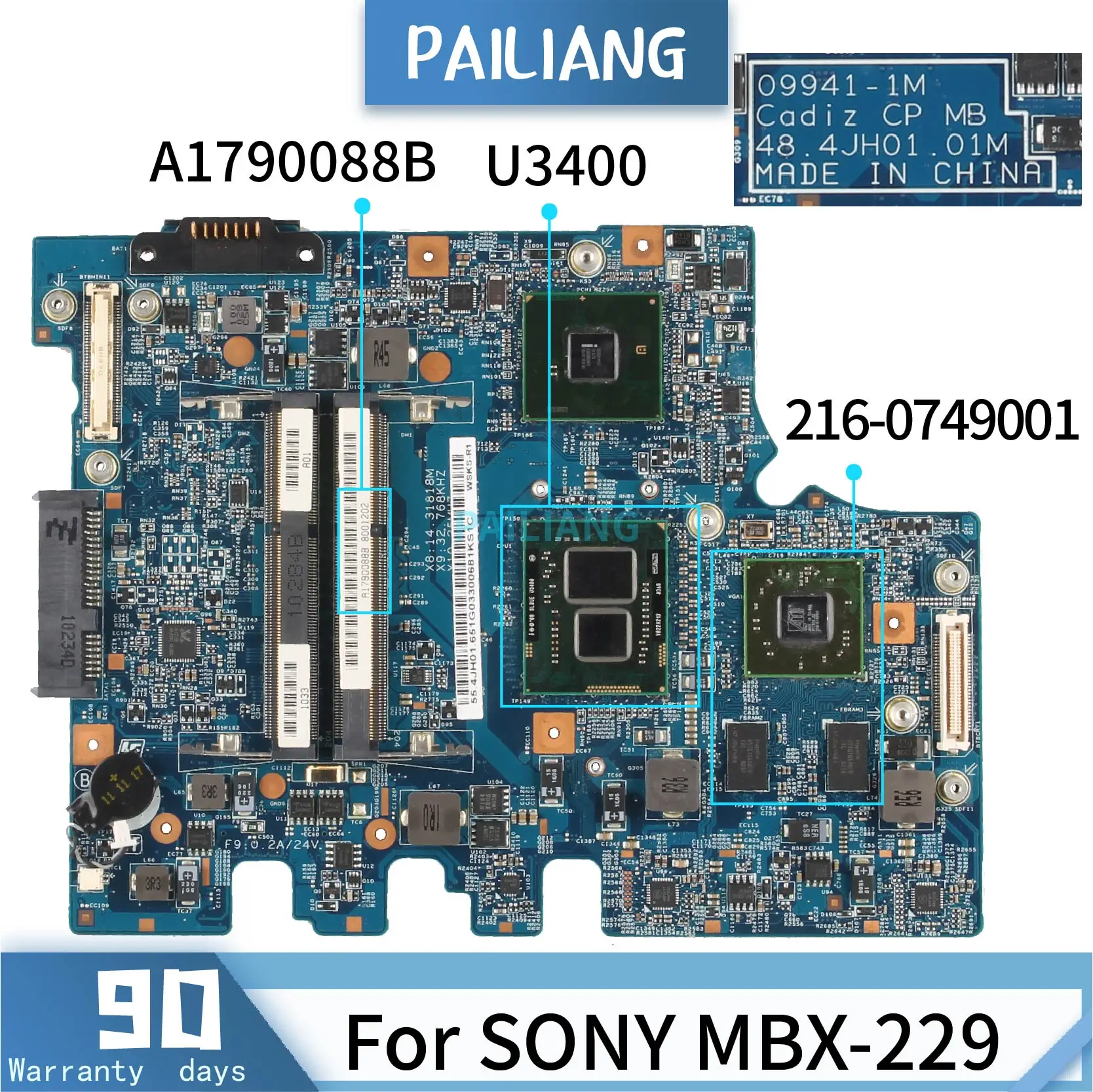 Placa base para portátil SONY MBX-229, A1790088B, 09941-1M, U3400, 216-0749001