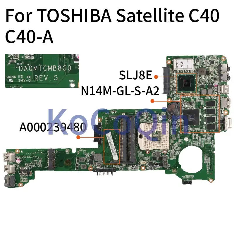 Comprar Placa base para portátil TOSHIBA Satellite C40, C40-A, C45, C45-A, A000239480, DA0MTCMB8G0, N14M-GL-S-A2, SLJ8E, DDR3