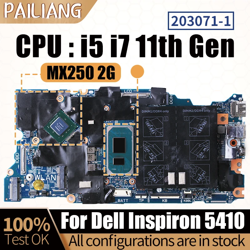 Comprar Placa base probada completamente para ordenador portátil Dell Inspiron 5410, placa base para computadora portátil 203071, 0HJ1G8, 0TPG56, 02F6MF, i5, i7, 11th Gen, MX250, 2G