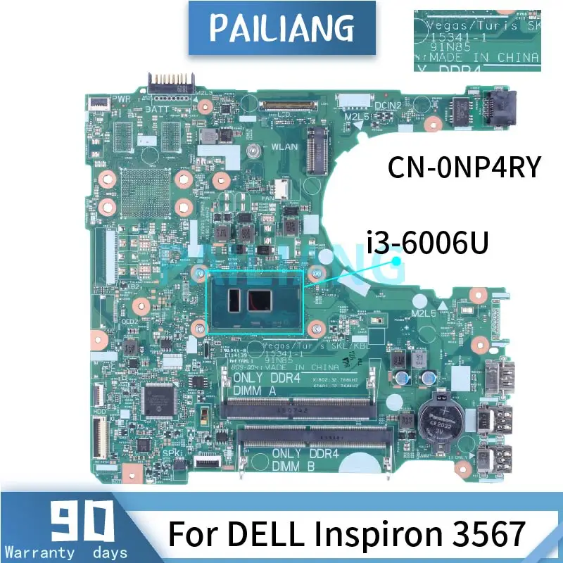 Comprar Placa base probada para ordenador portátil, I3-6006U para DELL inspirion 3567, 3467, 3568, 3468, 15341, 91N85, CN-0NP4RY, 0NP4RY, DDR4