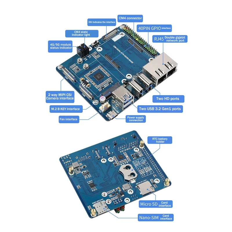 Es más conveniente de usar con múltiples interfaces como ETH/CSI/DSI/RTC/HDMI/Micro-SD/USB/M.2 B KEY.