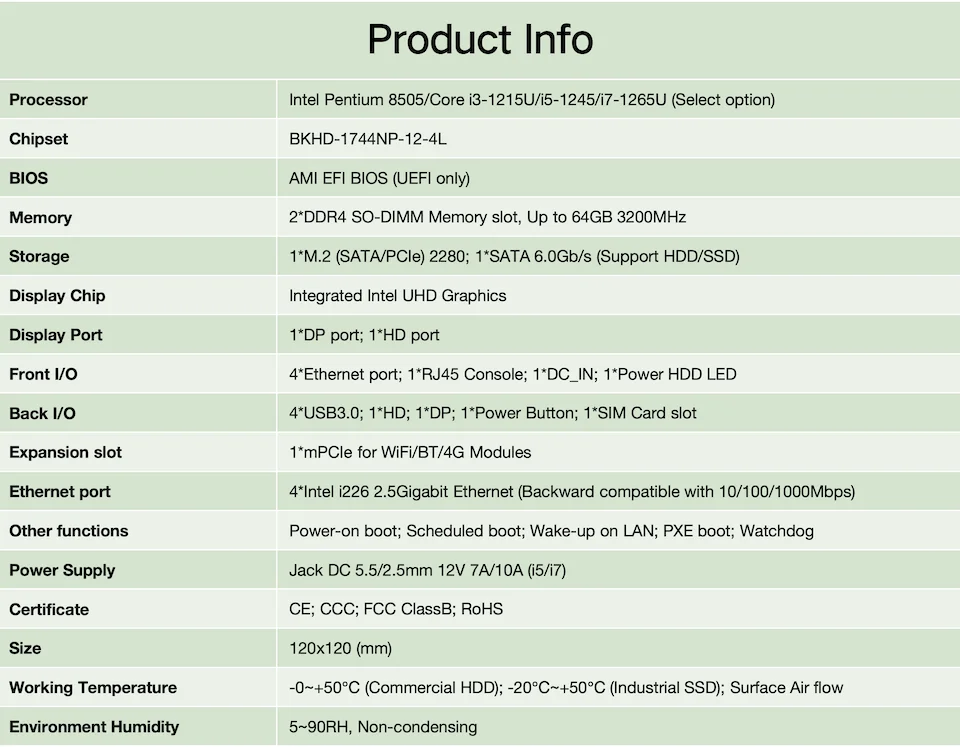 Comprar Placa base de red IKuaiOS 4LAN 2,5G Ethernet 12. a generación Alder Lake i3 i5 i7 Nano ITX para enrutador firewall integrado 1744NP-12-4L