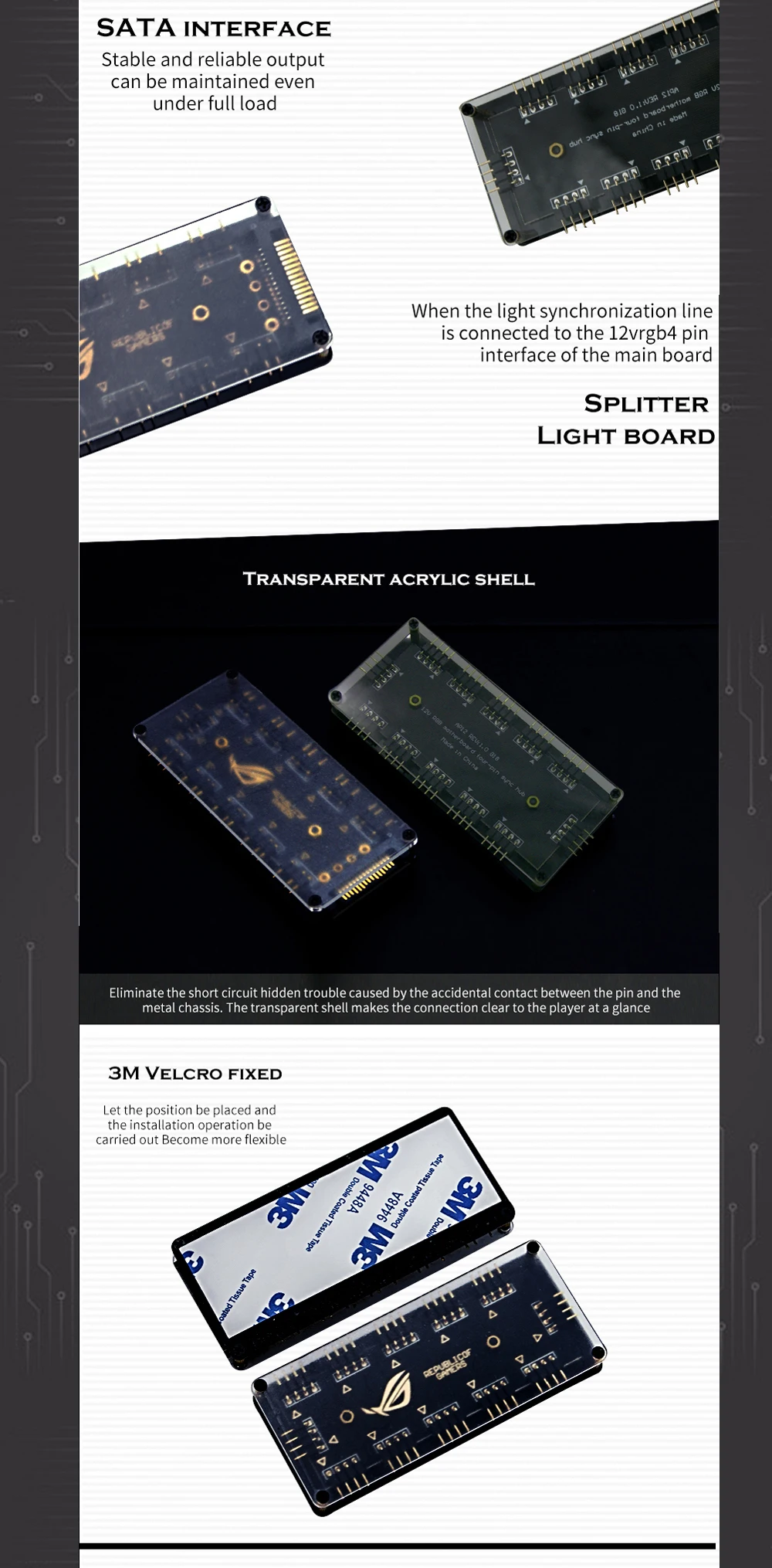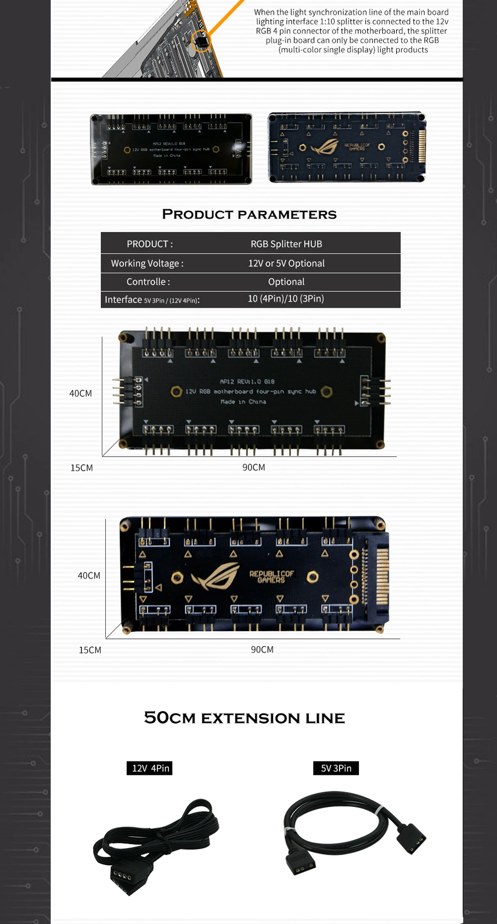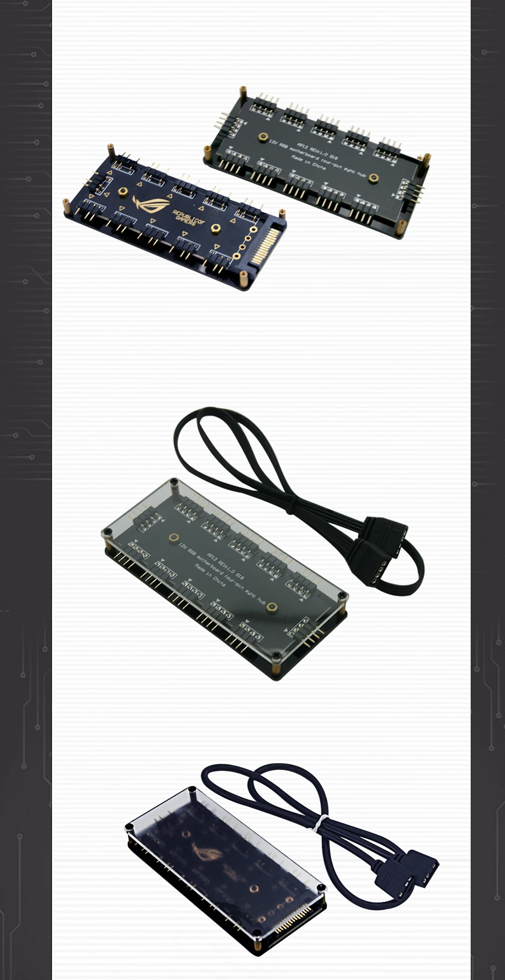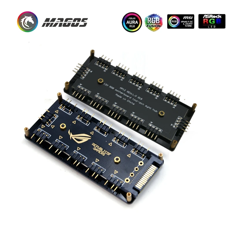 Comprar Placa base RGB Splitter HUB, 12V, 4 pines o 5V, 3 pines (fuente de alimentación SATA), soporte opcional, iluminación MB ARGB, AURA SYNC