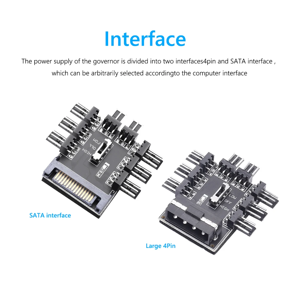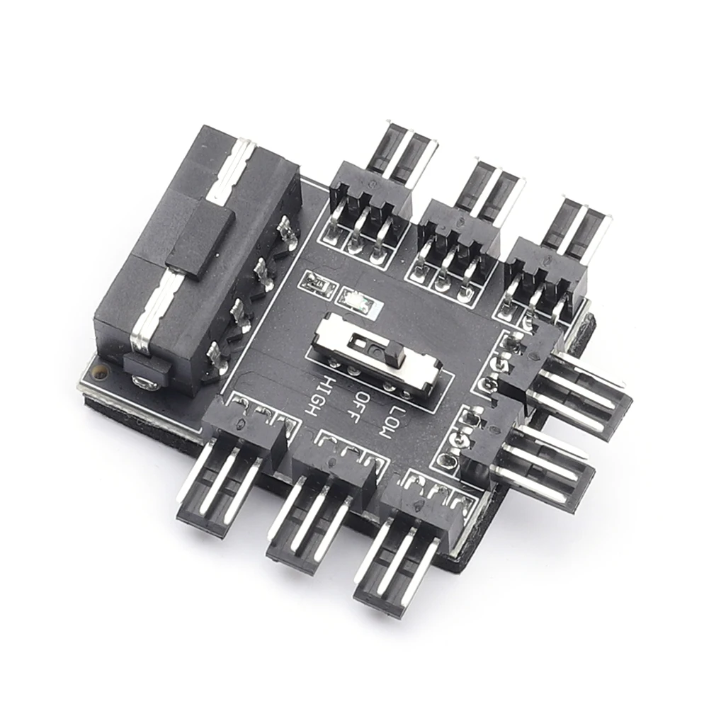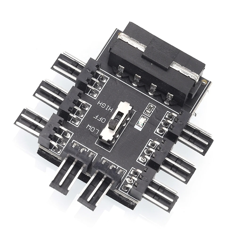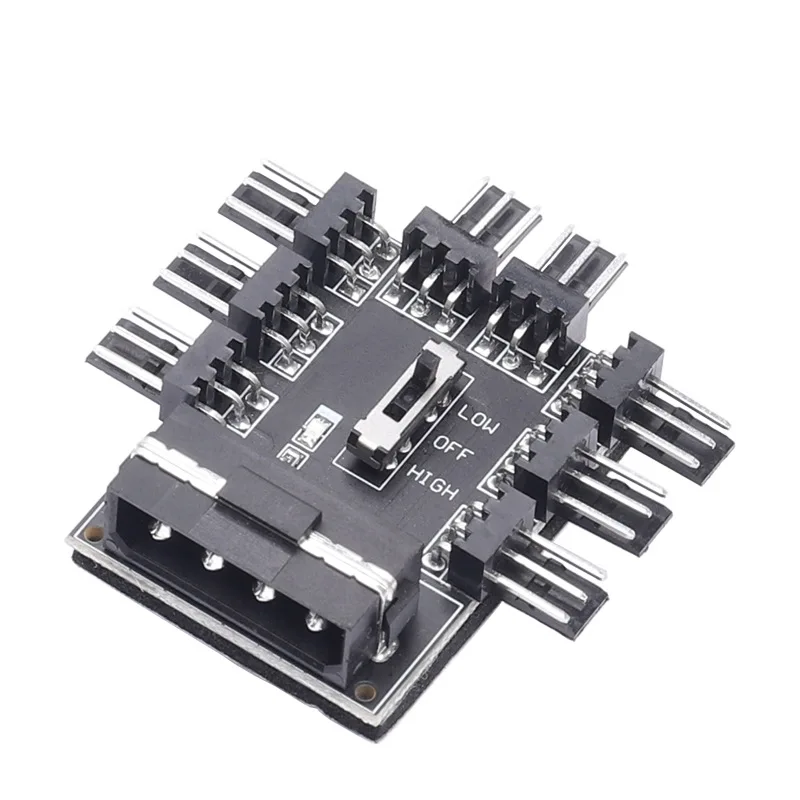 3. Controla 8 ventiladores al mismo tiempo: admite ventiladores con interfaz pequeña 3P/pequeña 4P, conecta 8 ventiladores al mismo tiempo.
