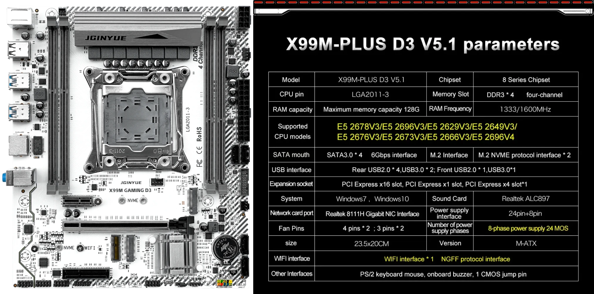 Placa base serie JGINYUE X99M, 6 tipos de placa base para ordenador, compatible con placa base procesador serie INTEL LGA2011-3 PIN, 1 ud.