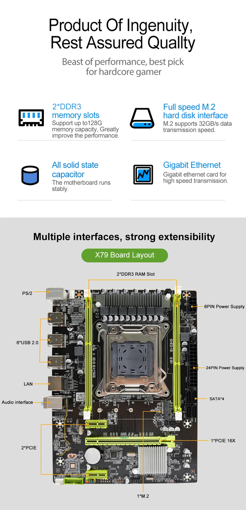 Comprar Placa base SJS X79 para ordenador de sobremesa, placa de escritorio, AMD DDR3, 64GB, 4 x SATA M.2, compatible con LGA 2011 Xeon E5 2630/2640/2650/2660/2670/2680 CPU