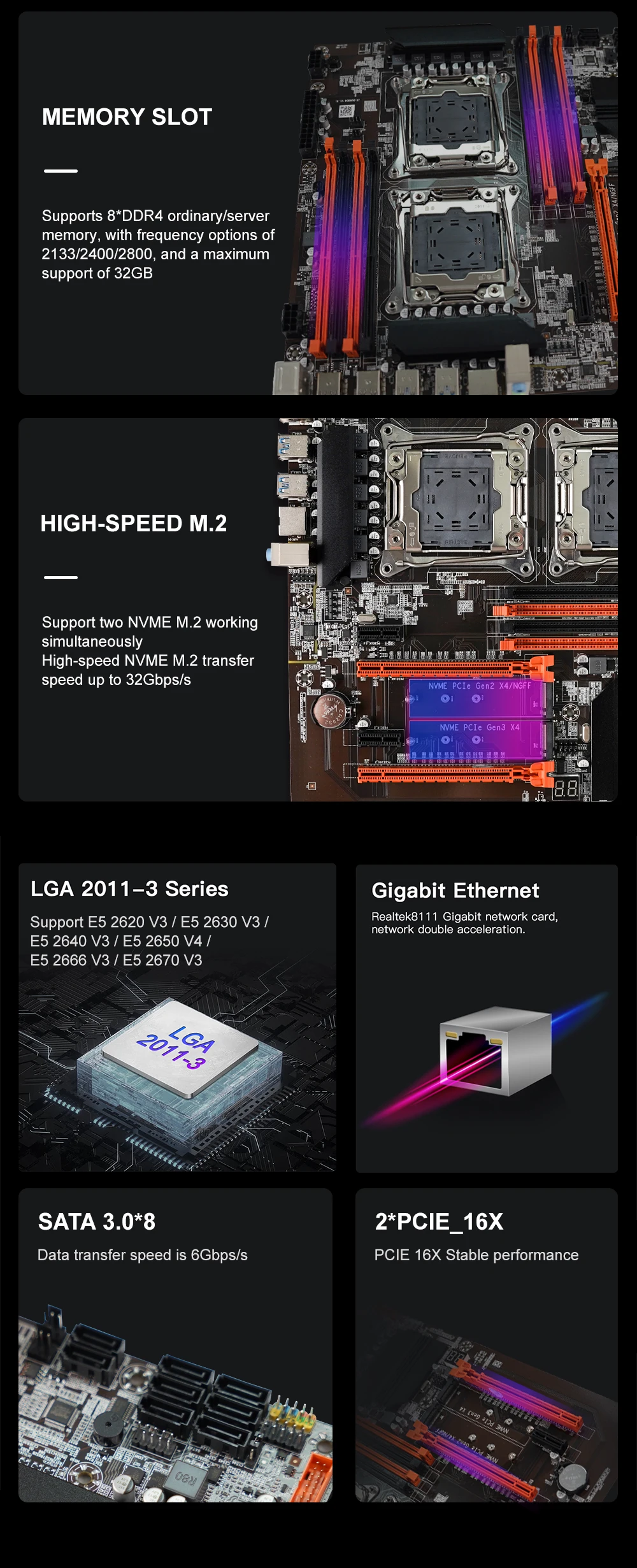 Comprar Placa base SJS X99, CPU Dual LGA 2011-3, compatible con Intel XEON E5 2673 2670 2666 2678 V3 V4, procesador DDR4 M.2 PCIE X99D4DU