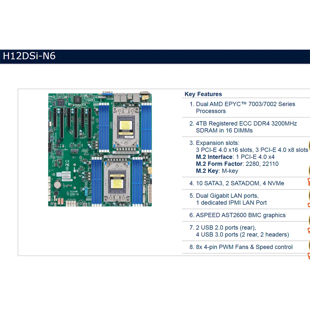 Comprar Placa base Supermicro H12DSi-N6, 2 CPU, AMD EPYC 7702, 64 núcleos, 2,0 Ghz, versión desbloqueada, servidor EATX, placas base, procesador skit