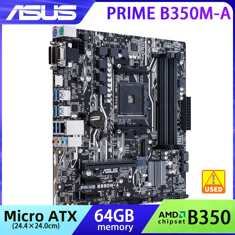 Comprar Placa base usada AM4 B350, ASUS PRIME B350M-A, toma de chip AMD B350, AM4, 4 x DDR4, 64GB, PCI-E 3,0, 2 x M.2, Micro ATX