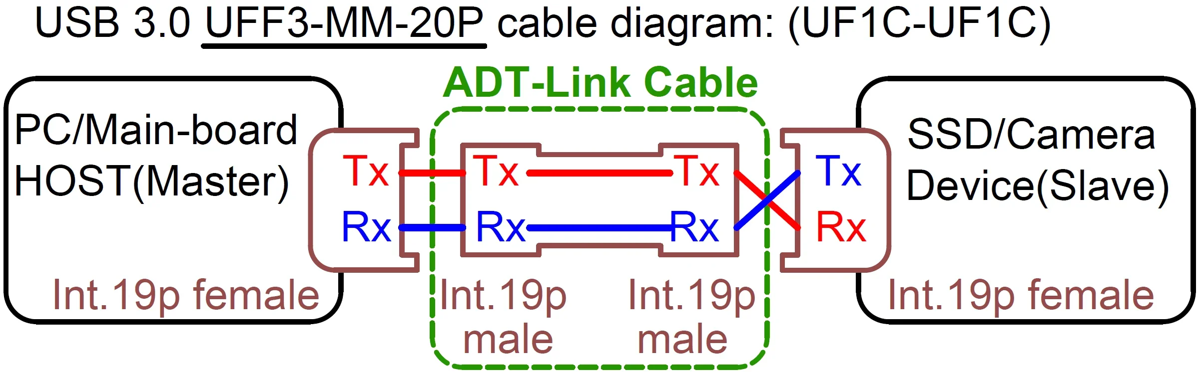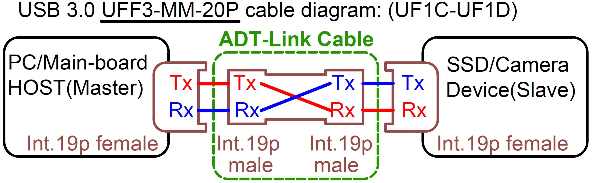 Nota 1: El extremo maestro USB3.0 está conectado al extremo esclavo y el Tx del extremo maestro debe estar conectado al Rx del extremo esclavo.Confirme el intercambio USB Tx-Rx de su dispositivo y seleccione el cable correcto.