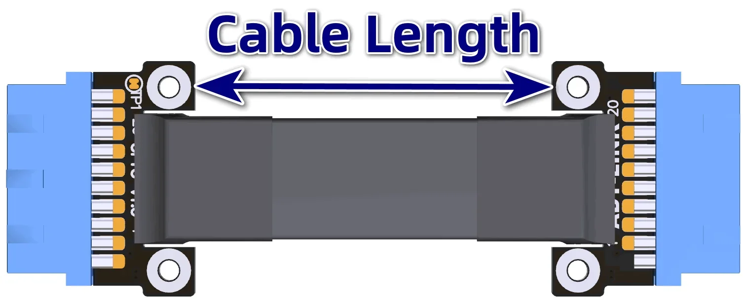 La longitud del cable se refiere a la parte del cable visible.No incluye la PCB ni el conector.Para conocer la longitud del cable, consulte la flecha azul de 5 cm en la siguiente figura.