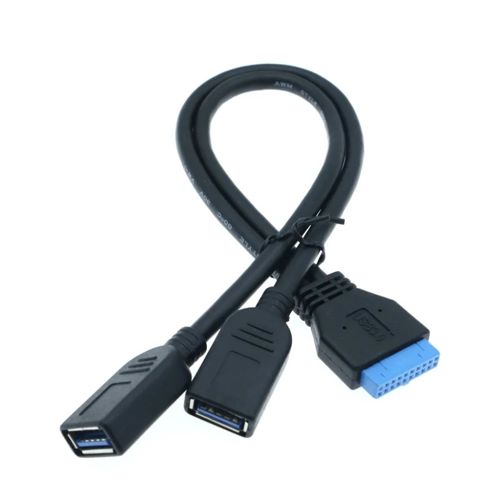 Comprar Placa base USB 3,0 de 20 pines, Cable macho a Dual USB 3,0 hembra para PC, carcasa de ordenador, 2 puertos USB3.0 a placa base, adaptador de cabezal de 20 pines