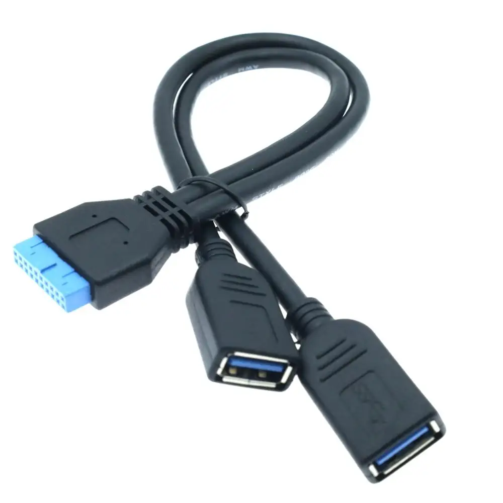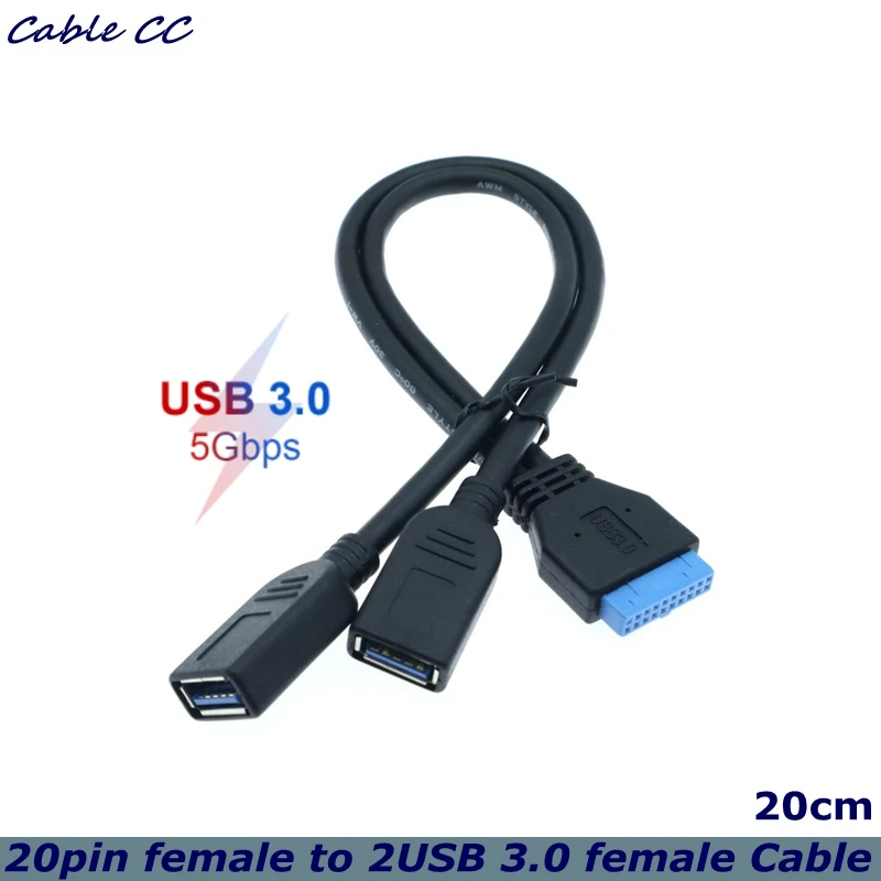 Comprar Placa base USB 3,0 de 20 pines, Cable macho a Dual USB 3,0 hembra para PC, carcasa de ordenador, 2 puertos USB3.0 a placa base, adaptador de cabezal de 20 pines