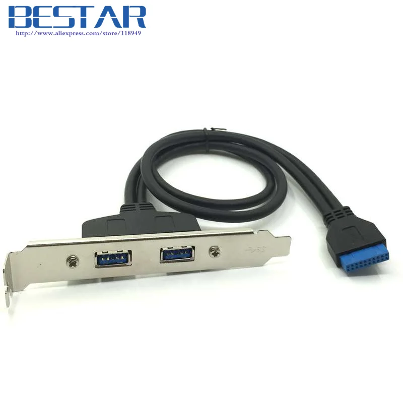 Comprar Placa base USB 3,0, cabezal de 19 / 20 pines A 2 puertos USB 3,0, Cable hembra para perfil PCI-e de escritorio con Panel de soporte PCI trasero