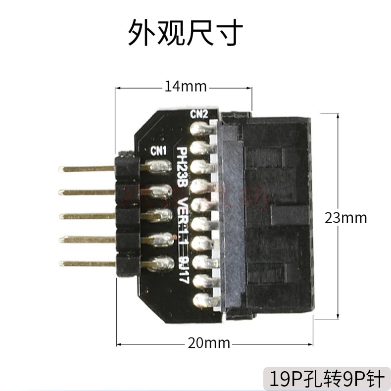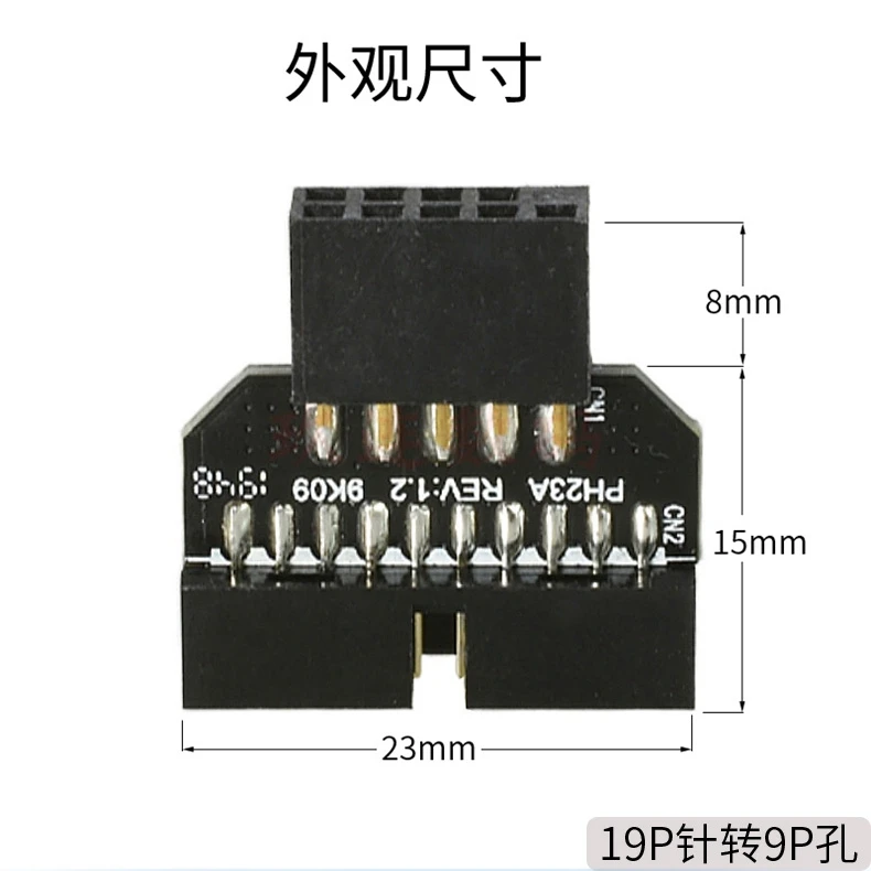 Carcasa reversible USB 2.0 de 9 pines a placa base Adaptador hembra con cabezal USB 3.0 de 20 pines