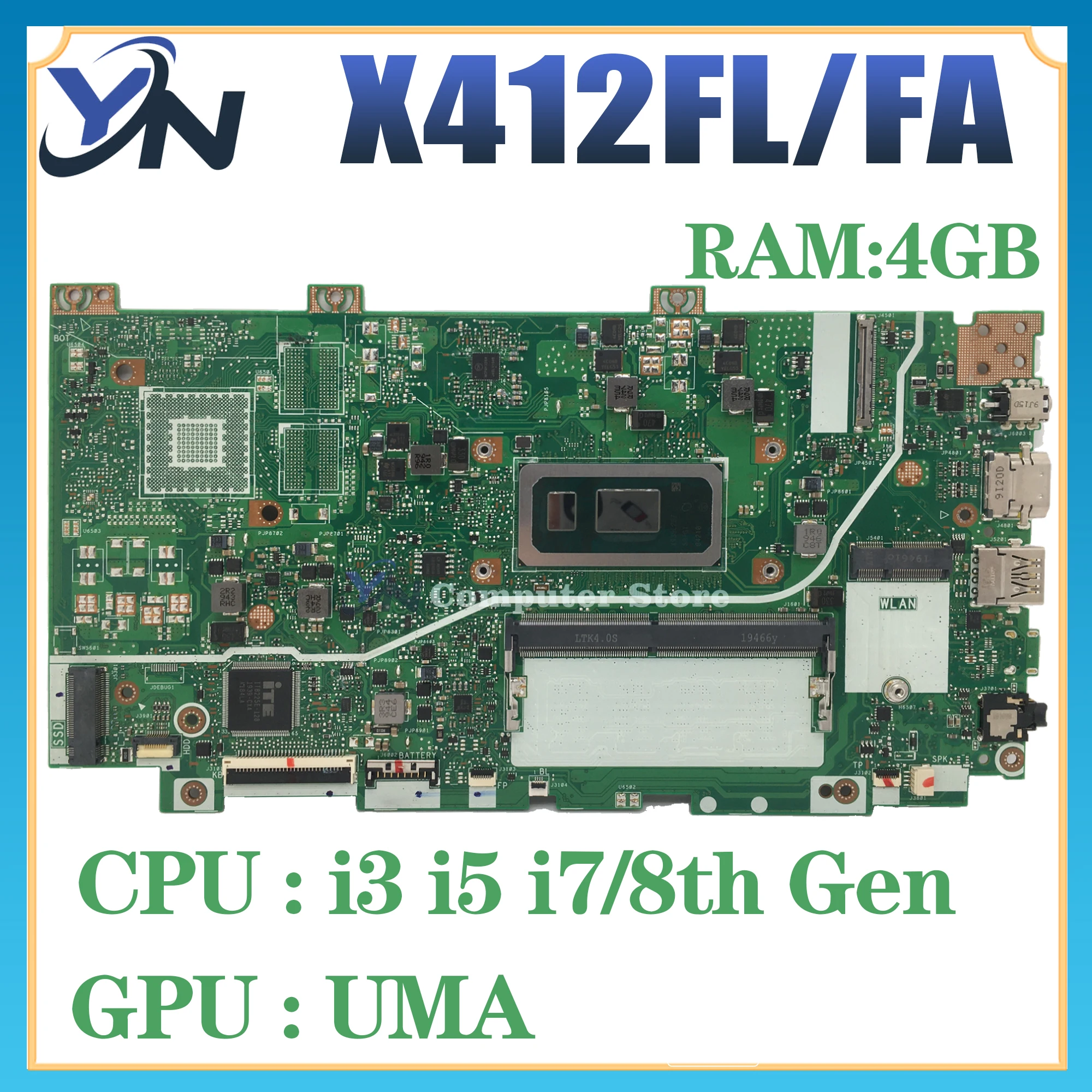Comprar Placa base X412FA X412FJC X412FLC X412FJ X412FL X412F A412F F412F K412F S412F V412F R424F V4000F V4000FJ placa base para ordenador portátil