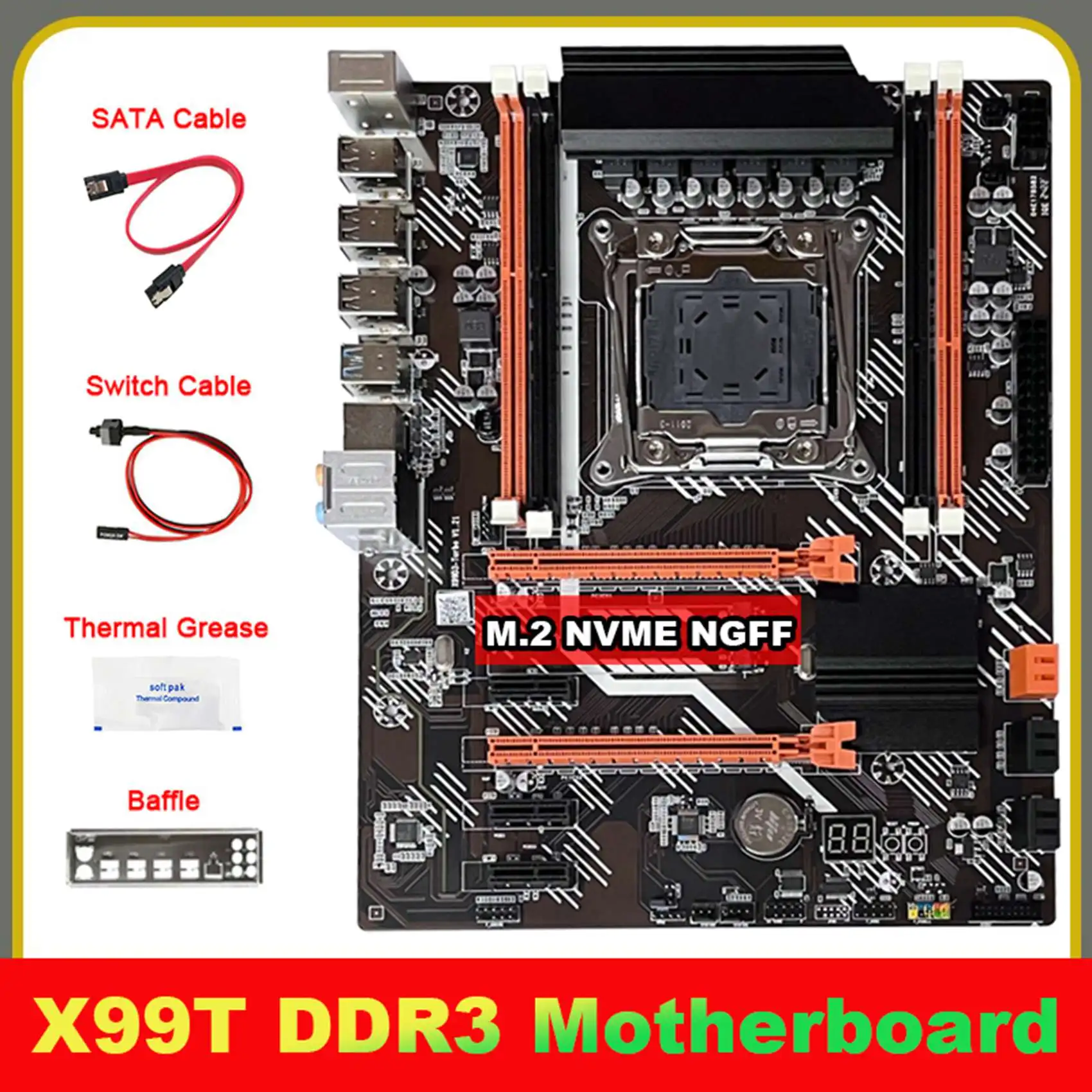 Comprar Placa base X99 + Cable SATA + Cable de interruptor + deflector + grasa térmica LGA2011 V3 M.2 NVME NGFF compatible con placa base DDR3 4X16G