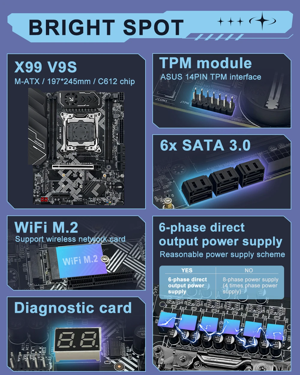 Las interfaces TPM de los modelos X99 V9S y X99U9 solo se pueden instalar utilizando el accesorio TPM2.0 compatible con el conector de 14 pines de ASUS.