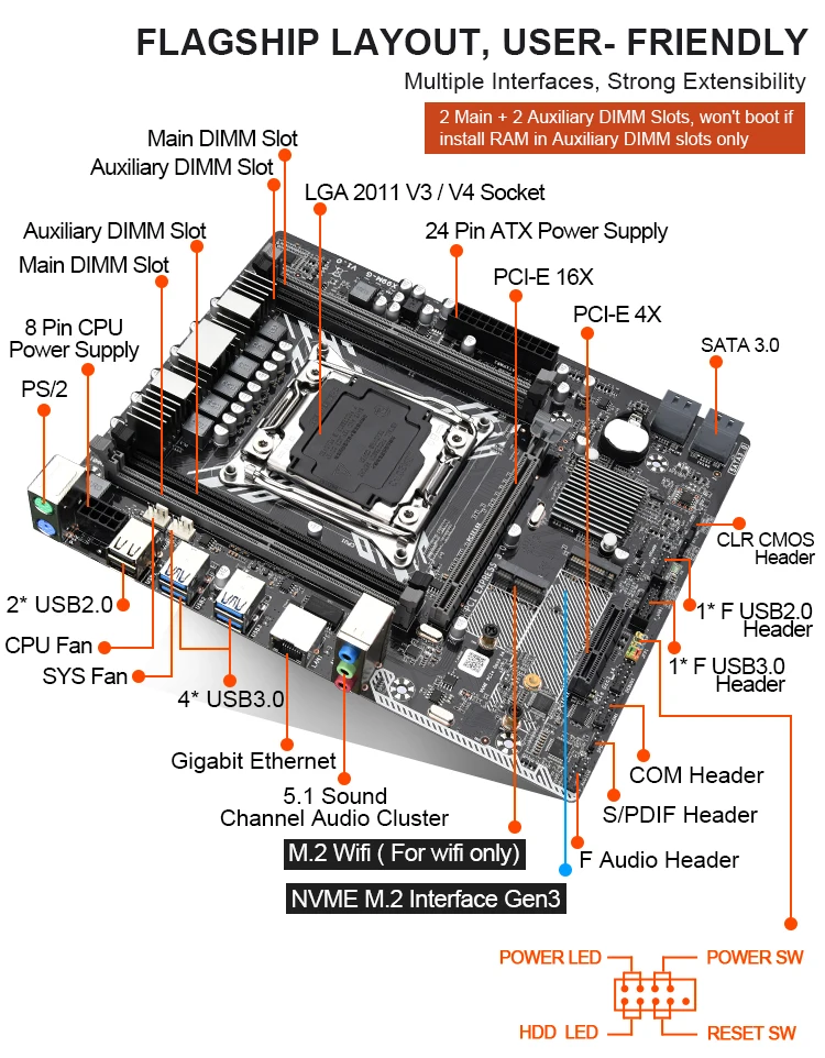Procesador: admite procesadores de la serie Intel 2011 V3 V4, compatible con E5 2620V3,E5 2678V3,E5 2650V3,E5 2640V3,E5 2690V3,E5 2680V3, etc.
