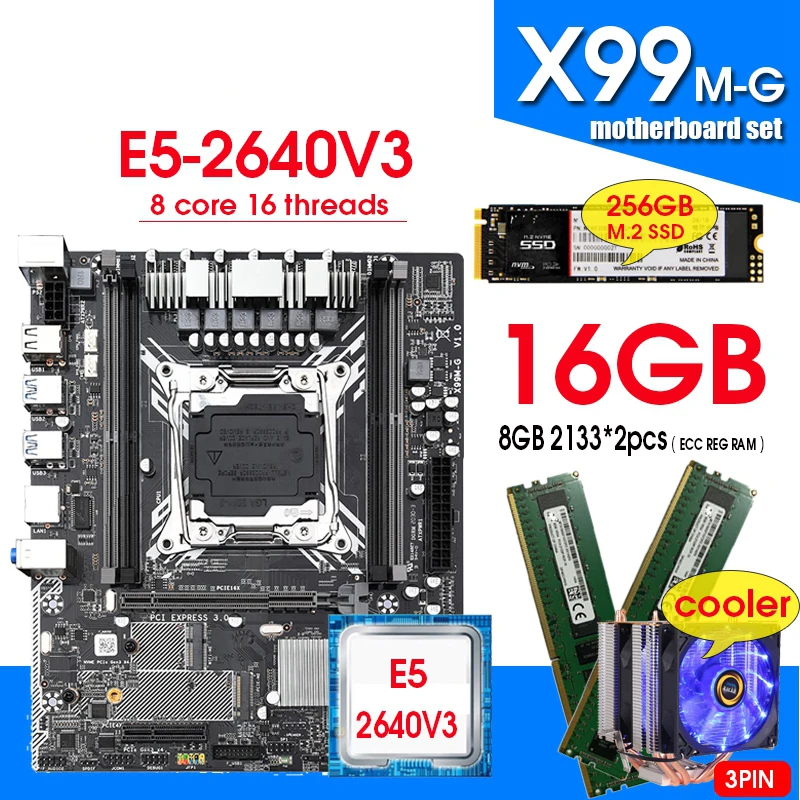 Comprar Placa base X99M-G Combo con Xeon E5 2640 V3, CPU de LGA2011-3, 2 uds. X 8GB, 2133MHz, memoria DDR4, NVME, 256GB, M.2 y enfriador