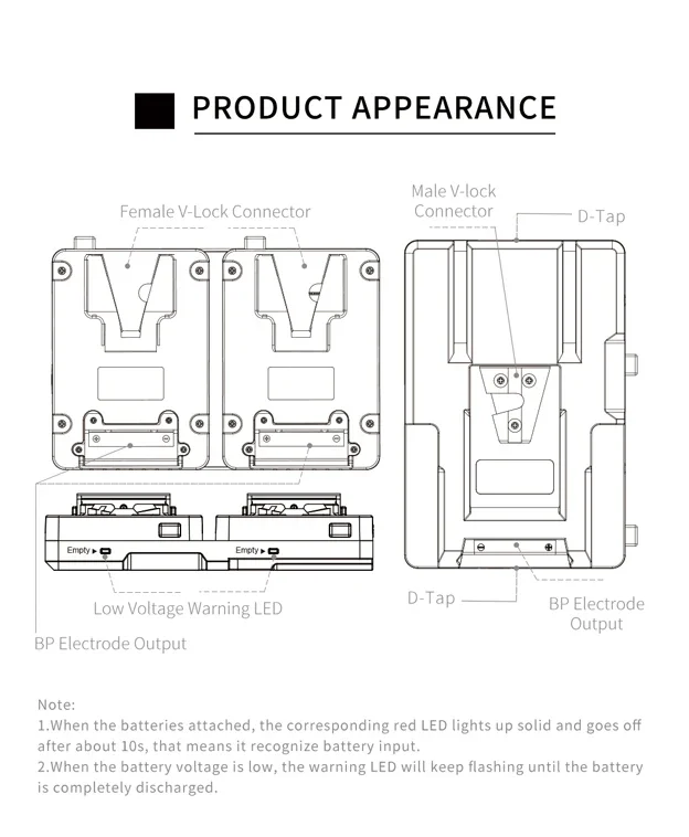 1.Se utiliza para dos mini baterías con montura en V, no más de 2,87” cada una.