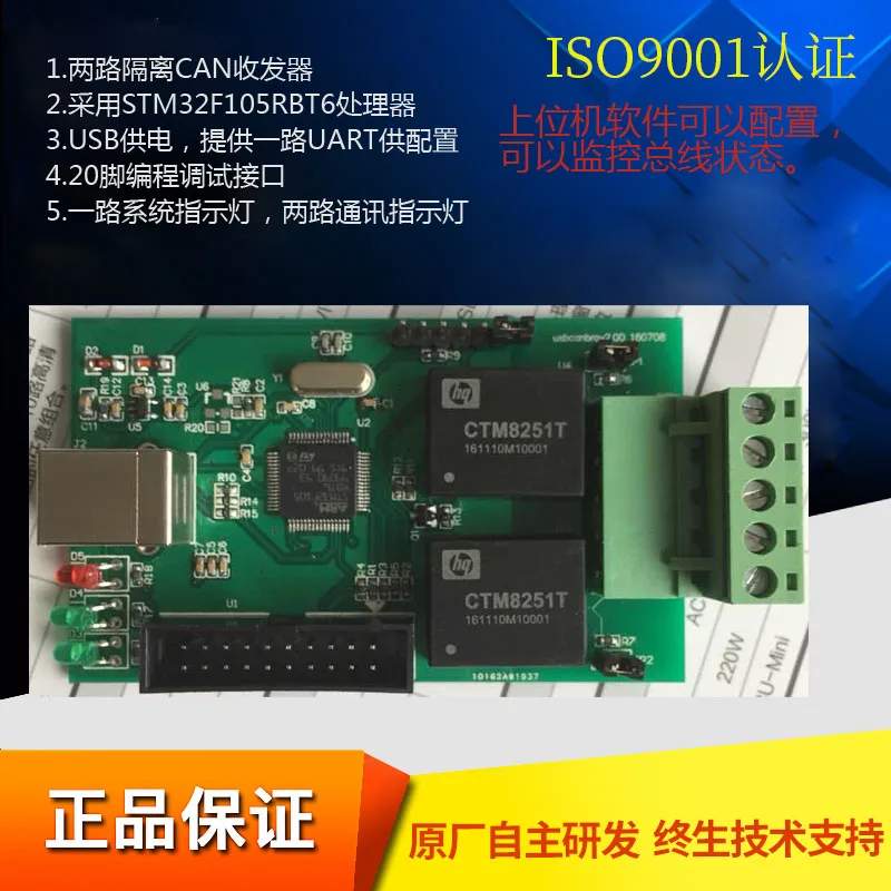 1. Esta placa de desarrollo dual CAN utiliza STMF105RBT6 de Cotex-M3 de stmicroelectronics, con un núcleo de 72MHz, periféricos ricos, USB, 2 controladores CAN, etc.
