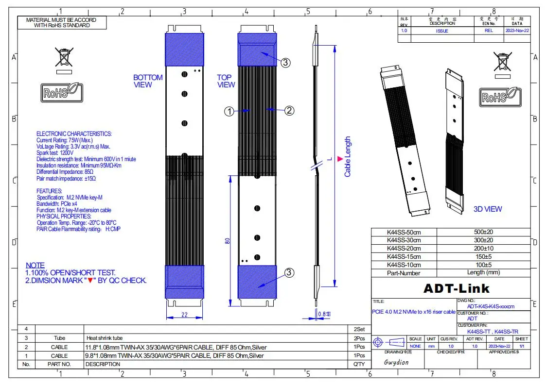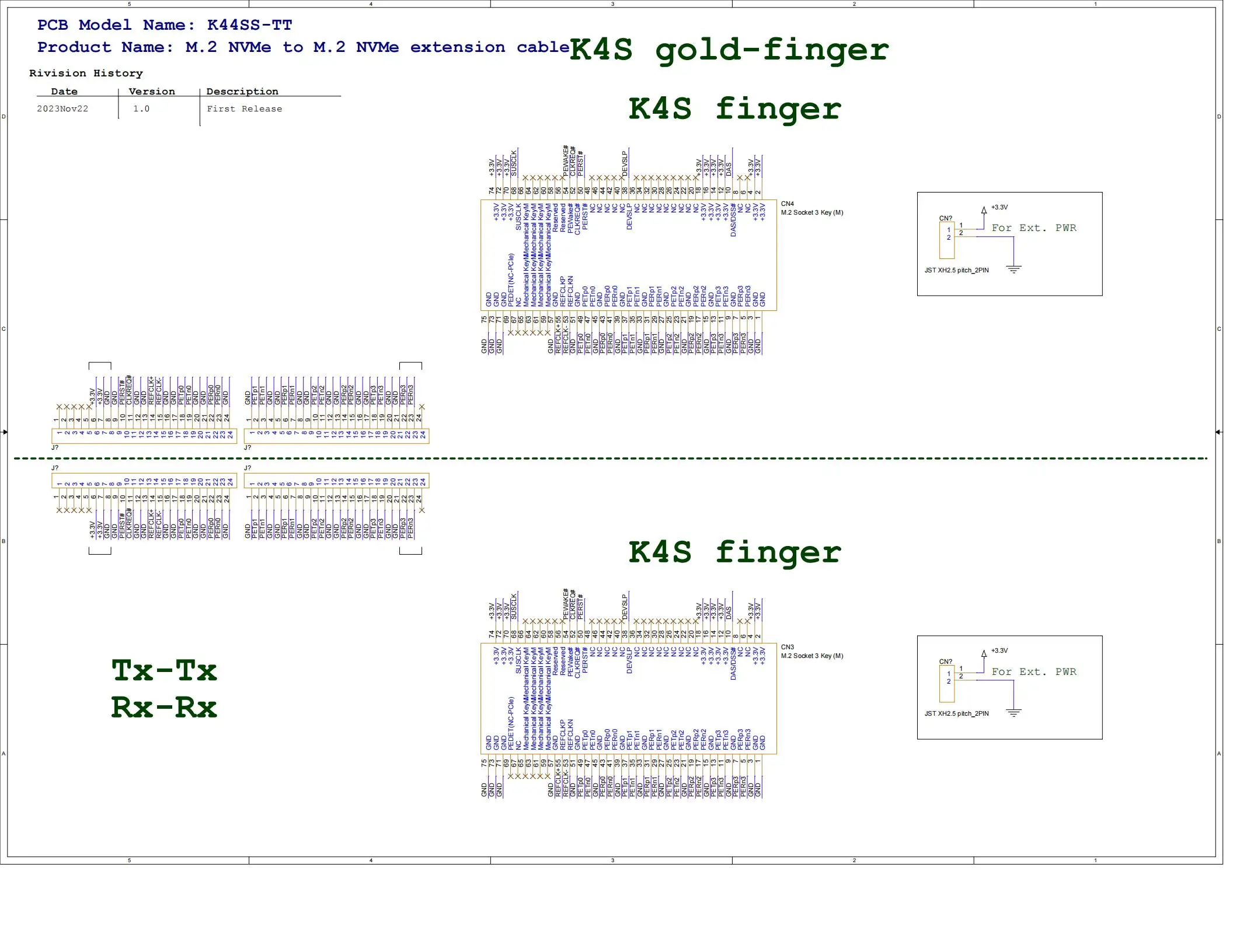 ModelosDirección de la interfaz Goldfinger y conectorSeñal Tx-RxK44SS-TTM.2 NVMe Gold-Finger a M.2 NVMe Gold-FingerSeñal directaK44SS-TRDedo de oro a M.2 NVMe Gold-FingerIntercambio de señalVentajas del producto: